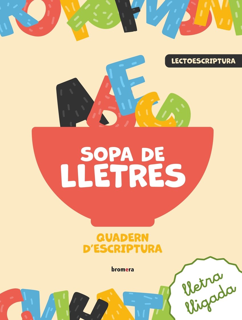 Sopa de lletres és el projecte de Bromera per a l’aprenentatge de la lectoescriptura. Basat en les evidències de la recerca científica, segueix el procés natural d’adquisició d’aquestes macrohabilitats lingüístiques. Es tracta d’un projecte flexible, format per un quadern de lectura i un quadern d’escriptura, que es poden treballar de manera separada o conjunta en una carpeta que, a més, compta amb material manipulatiu per a ampliar el ventall de tasques. 1. Del so a la grafia, seguint el procés natural d’adquisició de la lectoescriptura. 2. Progressió equilibrada, combinant el grau de dificultat i la freqüència d’ús. 3. Estructura acumulativa, per a fixar millor el codi escrit. 4. Enunciats clars, pictogrames i paraules clau destacades, per a afavorir el treball autònom. 5. Apartats de consciència fonològica, per a reconéixer els sons de manera aïllada, en síl·labes o en paraules. 6. Seccions d’identificació visual de les grafies, tant les majúscules com les minúscules, per a interioritzar les diferències significatives en el traç. 7. Introducció mesurada de les regles ortogràfiques bàsiques. 8. Desenvolupament de la consciència morfològica, per a facilitar l’accés al significat de les paraules. 9. Treball simultani de la lectura. 10. Disseny atractiu i visualment agradable, per a garantir l’atenció durant la tasca. Pots consultar els nostres nous projectes educatius en educacio.bromera.com.